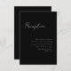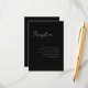 3,5 x 5 minsta skript, mottagningskort. Vit text mot svart bakgrund. En del av en samling i bröllop.
