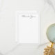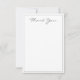Minimalistiskt silver och vitt platt tackkort, med silver gräns med anpassade mörkare silver-skripttypografi.