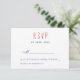Enkelt, modernt, minimalistiskt typografiskt bröllops-svarskort med returadress i röd, blå och vit färgkombination.