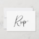 Ett enkelt, modernt invigningskort för svart och vitt OSA för minimalisten. "OSA" är skrivet i en söt, elegant och elegant skriptcalligrafi på kortets framsida. På baksidan av kortet kan du anpassa önskat svarsdatum och måltider så att dina gäster kan välja i klassisk minimal typografi. En klassisk och vacker OSA kort för såväl formellt som informellt bröllop.