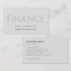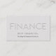 En modern, enkel och elegant utformning av affärskortet som har en ytpräglad utformning - ord "FINANCE" över en texturerad papper bakgrund. Det här enkla svarta och vita affärskortet är lika elegant som sofistikerat. Detta minimalistiska affärskort är perfekten för kredit professioneller inom finansbranschen: återförsäljare, handlare, kredit rådgivare och konsulter, reparatörer av kredit etc.