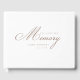 Kundspecifikt, minnesmärke, elegant, enkelt "In Loving Memory" brunt handskriftsteckensnitt, vit begravningsgäst bok. Finns i olika färg och storlekar.