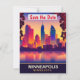 Minneapolis datum för förlovning bröllopsinbjudan, reseskorts. Strandpromenad vid solnedgången.
