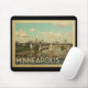 Minneapolis Minnesota-design i Vintage resor stil med en bro- och stadsplats i den här roligten vintage Minnesota-reseutskrift.