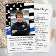Tunt Blue Line Polis Memorial Prayer Card i en modern amerikansk flagga i polisens flagga. Anpassa polisens minneskort med din polismans foto, avdelning, namn & data. Perfekt för polisavdelningar att hedra en fallerad polis och begravningsetiketter i tillsatta lagar. Frontcitatet "Välsignade är fredsmäklare: för de ska kallas Guds barn." Matthew 5:9 ~ Bakåtcitat " En polmans böner" Ta fram om du vill ha en bön för anpassningsbarna. COPYRIGHT © 2020 Judy Burrows, Black Hund Art - Med alla Höger reserverade. Polisminneskort i Tillsatta lagar