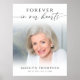 Enkel men elegant minnesbild välkomstskylt för att hedra din älskade vid en begravning, minnesstund, besök eller Celebration of Life. Skylten har ett älskat foto, känslan FÖR EVIGT I VÅRA HJÄRTAN i ett modernt skrivsätt med namn och datum i en svart-vit design. ALTERNATIV: Provet visas i storleken 18x24"; andra storlekar finns tillgängliga (välj Anpassad storlek för jämna kanter genom att ändra höjd och bredd proportionellt EFTER att du klickat på UPPLÅS-ikonen som ser ut som en kedjelänk). Affischer finns tillgängliga som digital nedladdning för lokal utskrift när tiden är knapp. Du kan också överföra designen till en skiva, banner eller annan produkt. HJÄLP: För hjälp med designändring, storleksändring eller överföring av designen, kontakta