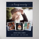 Skapa din egen unika fotokollage. Använd fyra, 4 av dina favoritfoton. Med texten: till minne av. Anpassa och lägg till ett namn och datum. Mörkblå bakgrund, vit text.