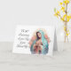 Detta traditionella katolska kort fångar den ömtåliga blicken från den välsignade Jungfru Mary när hon håller en ro, omgiven av en mjuk matris av rosor. På årsdagen av förlusten av en fru ger bilden renhet, kärlek och tro. Det här kortet är ett tänkbart sätt att erbjuda komfort och böner och stödja någon eftersom de hedrar minnet av sin fru på denna högtidliga dag.