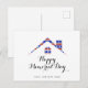 Önska dina kunder en "Glad minnesdag" med detta anpassningsbara vykort med ett hus med amerikansk flagga.
