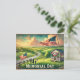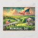 Här är en vintage-vattenfärg-stil resepostkort för Minnesdagen, med en patriotisk amerikansk landsbygdsscen med böljande gröna fält, en trägazebo prydd med flaggor och en familj som viftar med små amerikanska flaggor. 🇺🇸✨ Designen har mjuka, urblekta färger och nostalgisk vintage-typografi, vilket skapar en varm och charmig look.