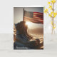 Minnesdagens kampstövlar och flagga i öken sand kort