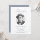 Meddela att din älskade passerade och detaljerna om firande i deras minnesminnesstund med den fredliga vita duven på grått grafik med blå rosett band-minneskort i meddelandet om minnesinbjudan. Anpassa till din plats, ditt foto och din namn om din älskade osa och information om din älskade. Ursprunglig konst och design av Sarah Trett för www.mylittleeden.com