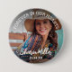 Anpassa din minnesknapp för vänner och familj till bära på en begravnings- eller minnesstund. Designen innehåller ett foto av din älskade med citatet FORVER IN OUR HEARTS, deras namn i ett modernt kalligrafiskt skript och datum med ett överlägg.