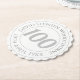 Minneshögtidlig födelsedagsfirande underlägg med personens namn och datum för deras födelsedag. Ett pappersunderlägg för någon som är 100