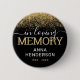 Enkel knapp för begravning utan foto med trendigets svarta bakgrund, en elegant guld glitter vattenfallsdesign, en sympati som säger "i kärleksfullt minne", deras namn och årens lopp.