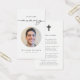 Vi presenterar vårt moderna fotominneskort för begravning, ett gripande och anpassningsbart sätt att hedra minnet av din älskade under en tid av sorg. Utformat med omsorg och detaljrikedom erbjuder detta bönekort en modern design som ger en vacker bakgrund för ett älskat foto, vilket skapar en personlig hyllning som firar den bortgångne älskades liv.