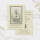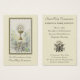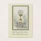 Du kommer att älska att anpassa vårt vackra minneskort för första heliga kommunion. Det har en vintagebild av kalken, hostian och pastellfärgade blommor.