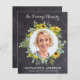 Moderna akvarell solros blomster- och eukalyptusmedlidande fotoförlag för tackkort. Dessa medlidandekort för begravning har en unik fotomall i solros och eukalyptus grönska krans, namn och datum, på en rustik tavla design. Personifiera baksidan med ditt tackmeddelande. Dessa minneskort för medlidande är perfekta för begravning tackkort eller firande av liv tackkort. COPYRIGHT © 2020 Judy Burrows, Black Dog Art - Alla rättigheter förbehållna. Budget Medlidande Foto Begravning Tack Solros