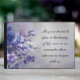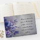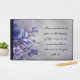 Funeral Guestbook Memorial med blå och lila blommigt bakgrund. Sensjukdomen lyder: " Må våra hjärtan vara öppen för livets skönhet, även om vi minns dem som inte längre är med oss :