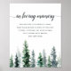 Designad för att matcha vår bröllopssamling i Timber Grove, är detta vinterländska eleganta minnesmärke perfekt för att placera på ett minnesbord eller en utställning för att hedra nära och kära som har gått bort. Anpassa rubriken och brödtexten (visas med "I kärleksfull minne" och en kort dikt), accentuerad med en nedre kant av akvarelltallträd i nyanser av jägare och skogsgrön.
