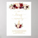 Burgunderröda blommor på minnestavla med modern kalligrafi och charmig akvarell. Denna skylt har moderna bokstäver och charmerande buketter med burgunderröda, röda och rosa blommor. Fler idéer finns i min samling för In Loving Memory.