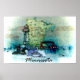 Minnemötet poster med en statlig karta, fyr, Hiss Bridge och loon.