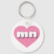 Den här nyckelringen har ett pulserande rosa-hjärta som innehåller den feta, vita, rundade nedre brev mn i fodral, en lekfull förkortning för Minnesota, den norra stjärnstaten.