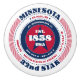 Dekorera ditt hem eller företag med den här unika keramiska knoppen som har en röd, vit och blå cirkelformad typografi med fakta om USA:s Minnesota-tillstånd. Det blev en stat 1858 och är den 32:a stjärnan. Dess huvudstad är St. Paul, och dess förkortning är MN. Andra intressanta fakta är dess region, zona tidskoordinater, geografiska koordinater och namn.