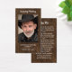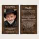 Faux Leather Sympathy Funeral Prayer Cards. Det här enkla minneskortet har en brunläderdesign. "In Loving Memory" Anpassa det här minneskortet för begravning med dina nära foto, namn & data och känslor. Tillbaka ~ 'Miss Me' Dikt, som kan vara personlig, var snäll och nå ut om du vill ha en annan design än en specifik dikt. Det här minneskortet kommer att vara en välkänd keepé, för begravningstjänster och firande i livet. COPYRIGHT © 2020 Judy Burrows, Black Hund Art - Med alla Höger reserverade. Minnesparkskort för läderbråck