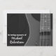 En vacker elgitarr står på en svart bakgrund som är perfekt för en guitarist. Ett citat från Irvin Berling finns på baksidan: "sång är slut, men meloderna ligger på..."