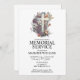 Memorial Service-inbjudan med en kristen kor och vattenfärgsblommigtar. Anpassa den med händelsens datum, plats, OSA och all annan information som behövs.