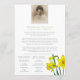 Beställning av begravningsprogram vid dubblan gult vår. Ett enkelt program för elegant, ersätt exempeltext och fotohållare med din egen speciella information om foto och begravning. Ursprunglig vattenfärgsmålning och design av Sarah Trett för www.mylittleeden.com