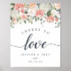 Inbjudan gäster för att ta en favoritlibation från pub med vår charmerande blommigt bröllop pub. 11x14 poster med ett överst gräns av pastellfärgade blommor och löv, med "cheers to kärlek" i rökigt blått grått-kalligrafi och blockering. Anpassa med namn och bröllop-datumet under inskriptionen. Designad för att matcha vår samling av Blommigtar från Midsommaren.