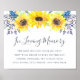 Land chic-skylten är perfekt för att på ditt bröllop placera ett mottagningsminnesmärke för bord eller visning som hedrar närstående som har passerat. Anpassa huvud- och brödtexten (visas med "In Loving Memory" och en kort dikt) i kalligrafiskript och klassisk blockering. Tillagd med en gräns av gult vattenfärgade solblommor och marinblå vildblomknoppar som matchar vår samling av land chic Flowerfields bröllop.