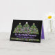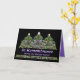 Elegantens sympatikort för hälsning av ihågkommande med glöd av Julgranar från brännskador på trädens toppstjärnor, lila och röda prydnadsföremål samt smycken med smycken. Låt minnen och reflektionerna från din älskade fylla ditt hjärta med värme. Invändig text kan vara personlig med hjälp av den angivna mallen. Vackert modernt fraktalmönster. Ursprunglig design av Anura Design studio.