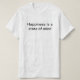 En pulserande och upplyftande t-shirt-design med frasen "Lycka är ett sinnestillstånd". Texten är kreativt formaterad, med blomstrande typografi som präglas av positivitet och lugn. Bakgrunden är bl.a. subtil, abstrakt inslag som mjuka moln och strålande solstrålar, som framkallar en känsla av inre fred och glädje. Perfekt för dessa