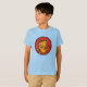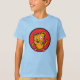Ein T-Shirt mit einer Cartoon Katze auf einem roten Kreis. Ein fröhliches Kätzchen, ein fröhlicher Tagesbegleiter.