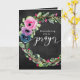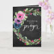 Uppmuntra någon med detta unika kort med detta kalligrafitypmeddelande i vitt, "Minns dig i bön." Bakgrunden inkluderar akvarell blomsterkrans på digitalt renderad svart tavla bakgrund. Meddelande på insidan (kan anpassas): Jag hoppas det uppmuntrar dig att veta att du är älskad, skattad och upplyft i bön. Jag ber att Gud ska trösta dig, uppmuntra dig och omge dig med sin fred.