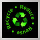 Svart poster med en grönt-återvinningssymbol omgiven av "Reducera - Reuse - Återvinna" i grönt.