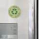 Reducera - Återanvända - Återvinna - Symbolmagnet för nödlidande återanvändning i mörk grönt och olivbaserade produkter.