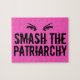 Fantastisk feministiska pussel i shock rosa med våldsamma ögon från kvinnan ovanför ord Smash the Patriarchy. Med den här coolans gåva stöder vi jämställdhet och feminism.