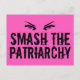 Ett fet vykort för kvinnors höger med en kvinnas öga ovanför ord Smash the Patriarchy in coola, grunge font on a ljus rosa bakgrund. Köp den här gåvan till varje stark kvinna du känner för att hjälpa dem stiga upp upp och kräva jämlikhet. Låt oss krossa glastaket!