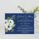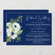 Om omständigheterna kräver att du minskar din bröllopsfest, informera din ursprungliga utökade gästlista med detta vackra mindre bröllopsinbjudan med en akvarellblombukett av vita anemoneblommor och grönska, "Mindre bröllop" skrivet i ett stilrent vitt skrivstil och enkel vit typografi mot en elegant marinblå bakgrund. Du kan anpassa ditt meddelande om reducerad bröllopsgästlista mer detaljerat och lägga till information om livesändning av ceremonin och bröllopswebbplats.