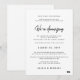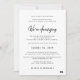 Nedskalad bröllopsannons modernt manus svart och vitt minimalt enkelt elegant bröllop ändring av planer uppdateringskort. ++++++++ Ersätt dina uppgifter i texten!