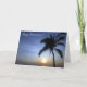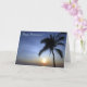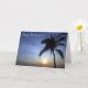 Handflatan träd på en strand vid solnedgången. Anpassa kortet för valfri tillfälle.