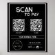Dessa minimala svarta sökningar för att betala poster tecken är anpassade och din affärsinformation är enkel att lägga till **också som omedelbar hämtning**. Med 2 QR-koder kan du välja venmo, paypal, cashapp eller någon annan betalapp för att länka till ditt tecken så att kunderna enkelt kan betala för köp där. Denna minimala avsökning i stil för att betala tecken är lämpligast när du redan har ett befintligt varumärke men behöver en avsökning för att betala tecken som är professionell. Det är den poster stil som man kan ställe i en piedestal, ram, på väggen eller som en lägenhet poster på bord.