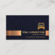 En faux guld rand i närheten av basen framhäver ett blått grå täcke. guld biet har sin prestigefyllda namn och sin befattning med en logotyp i guld lastbil som du kan använda precis ovanför. Nära kortets bas är ett alternativ för slogan för att du ska kunna publicera dina tjänster. Ändra bildtexten till kostym efter behov.