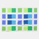 Festive och lugn samtidigt. Grönt och blå fyrkanter.