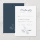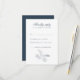 Elegant bröllop OSA kort har en typografisk snyggt med en minsta vintage av tropisk konturkonst handflatan löv i en marinblå färg. Temat färg bär på kortets baksida med bilden av det tropiska löv i vitt. Det här biet på bröllop-kontoret är redot för dig att anpassa dig efter detaljerna på din speciella dag. En del av en ständigt växande samling.