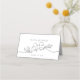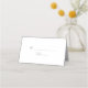 Elegant modernt, minimalistiskt, vitt bröllop-platskort med namn och bordsnummer, ett unikt hand plockade-par-love birds och handskrivet kalligrafskript.